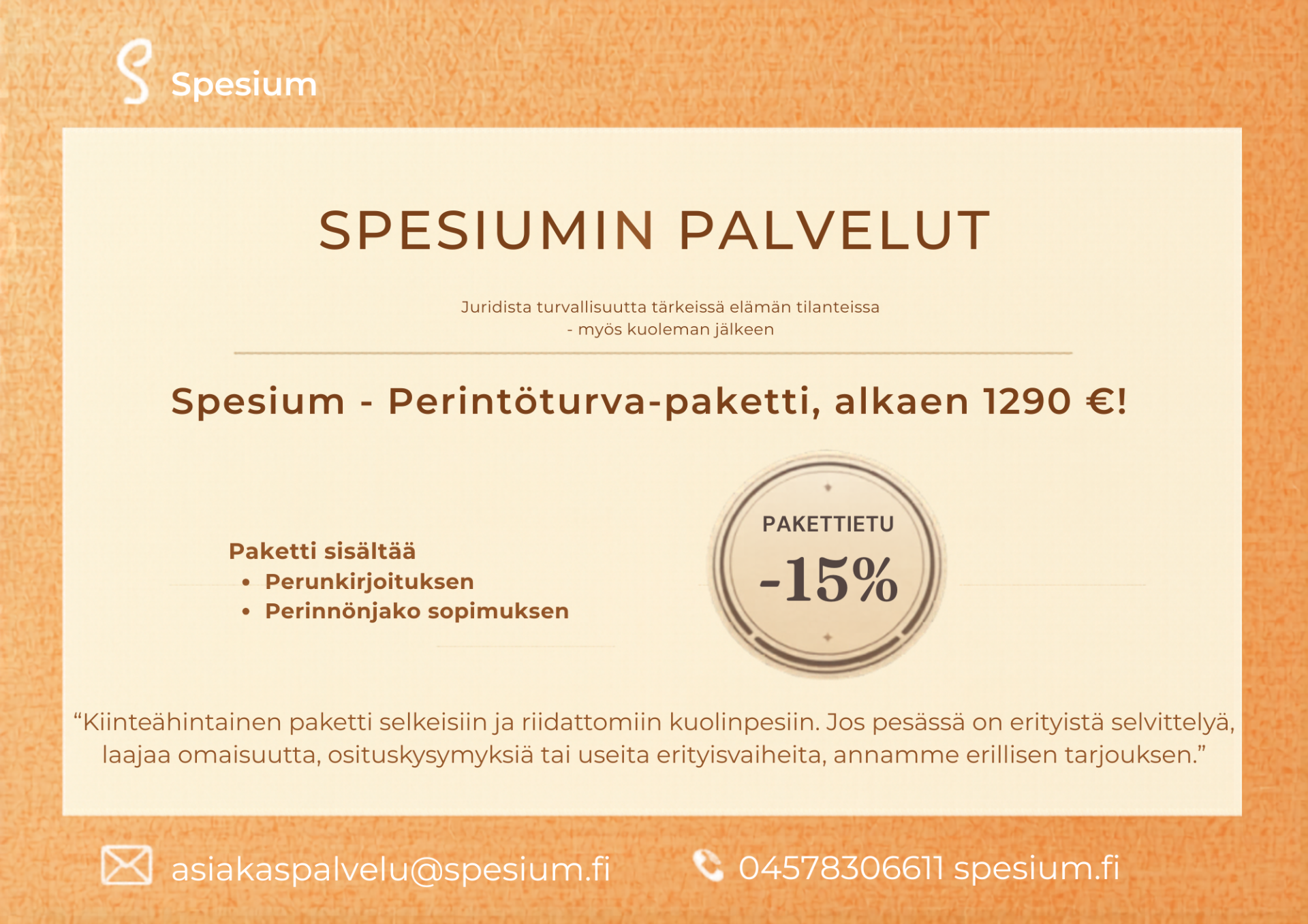 Omaisille ja kuolinpesille tarjottavat palvelut auttavat hoitamaan vainajan asioita selkeästi, lainmukaisesti ja mahdollisimman vaivattomasti. Palveluihin voi kuulua esimerkiksi kuolinpesän selvittäminen, perunkirjoitus, perinnönjako, omaisuuden myynti ja hallinnointi sekä viranomaisilmoitusten ja asiakirjojen laatiminen.